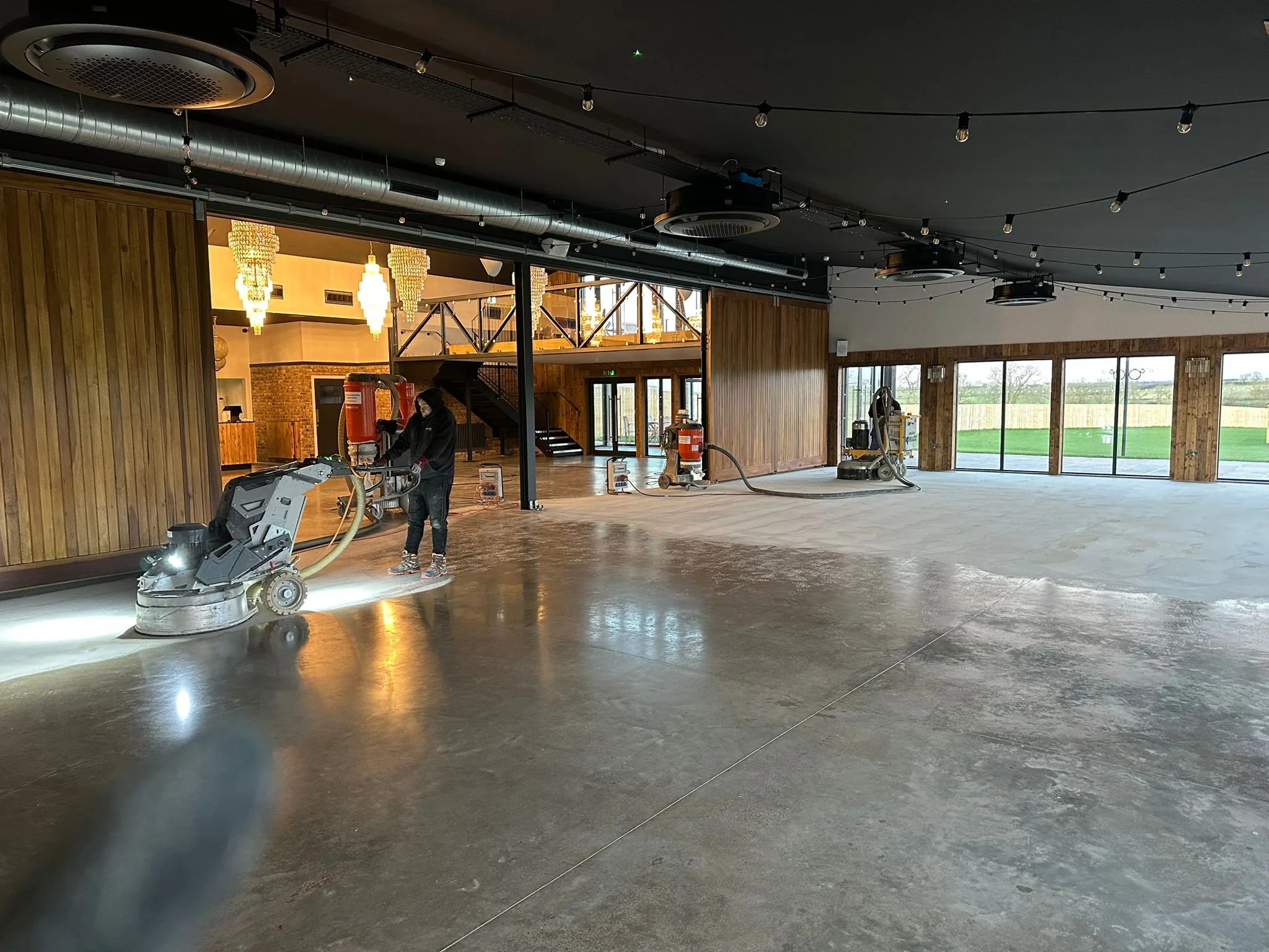 We were contracted to restore and finish a concrete floor at a Beautiful Wedding Venue in Yorkshire, delivering a high-performance, visually striking polished concrete surface across a 340m² area.