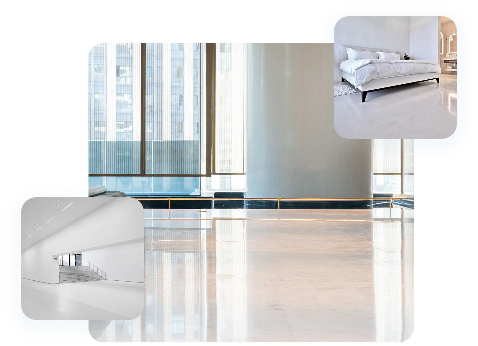 Our market-leading SIB overlays don’t yellow when polished and are the only way to achieve a true white finish—ideal for seamless floors in shopping centres, factories, and new builds.